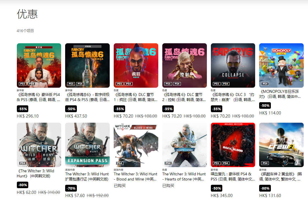 索尼PSN港服延伸游玩优惠活动PS4/PS5数字版游戏推荐: