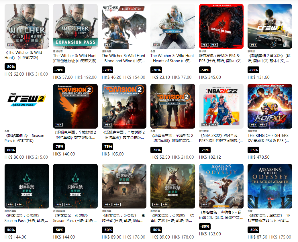 索尼PSN港服今天开启了一个名为延伸游玩优惠的活动,低至2折,PS+会员还有15折,这次活动截止至5月25日,本ACG吐槽君feichenpan看了一下,基本上是把什么终极版,豪华版,年度版,皇家版,黄金版,决定版,完整版等PS4/PS5游戏和季票DLC追加内容做了个合集盘点,游戏完美强迫症玩家可以自行查漏补缺,看看有什么想买的季票DLC补个票,很难不怀疑索尼是不是趁月底PS+高级会员游戏库出来前再割一波玩家韭菜。