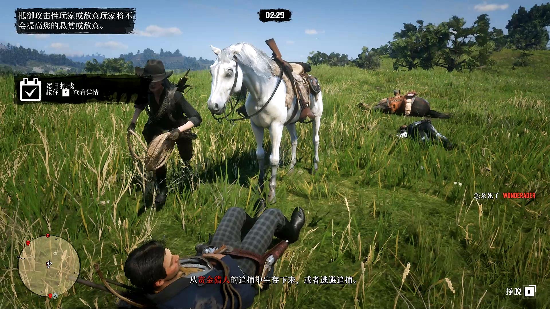 在细节方面,做得比GTA好很多,但是玩法上跟GTA是两款不一样的游戏,尤其是线上模式,可玩的东西实在是太少了,没有精彩的任务可做,没有各式各样的交通工具,开局只有一匹马一个人,玩到最后还是一匹马与一个人,它不像GTA那样可以购买各种资产,经营各种生意。