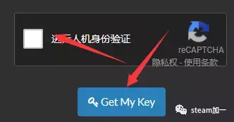 四个任务完成之后进行谷歌验证,验证完成之后点击get my key获取激活码