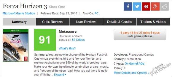 《极限竞速:地平线3》虽然还要没有正式上线,不过媒体评分倒是提前出炉了。秉承系列一贯的良好素质口碑,这款主打多地形赛道的开放世界赛车游戏立刻获得了众多媒体的一直好评,目前metacritic媒体综合打分为91分(Xbox One版)。