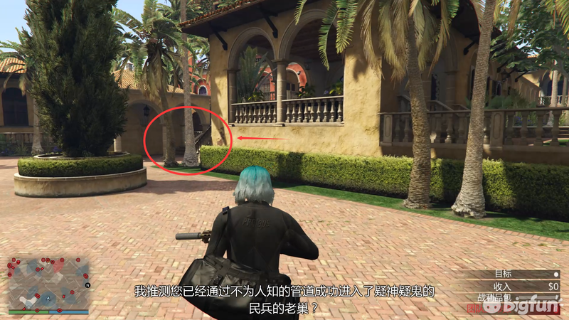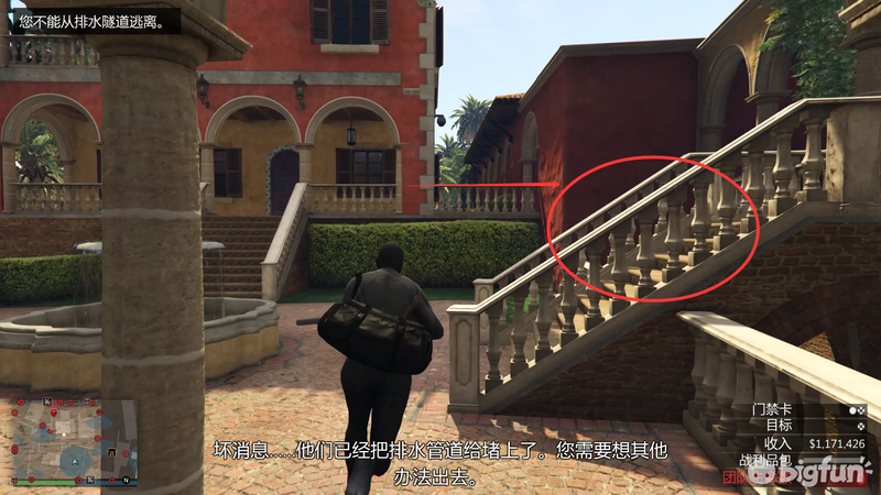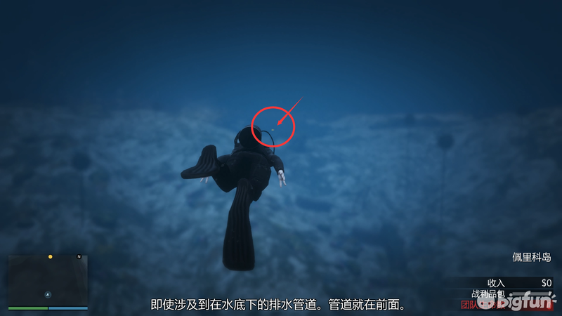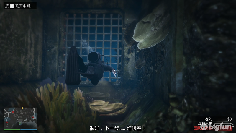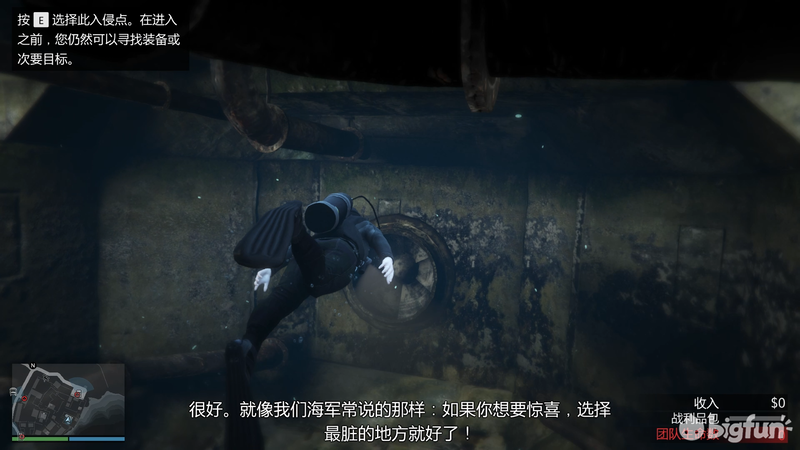 之后进入排水管道,游到尽头,按e确定入侵点,进入豪宅。