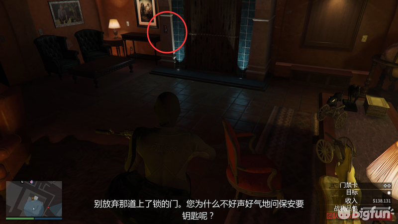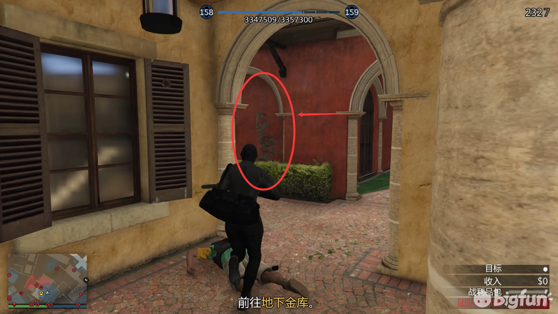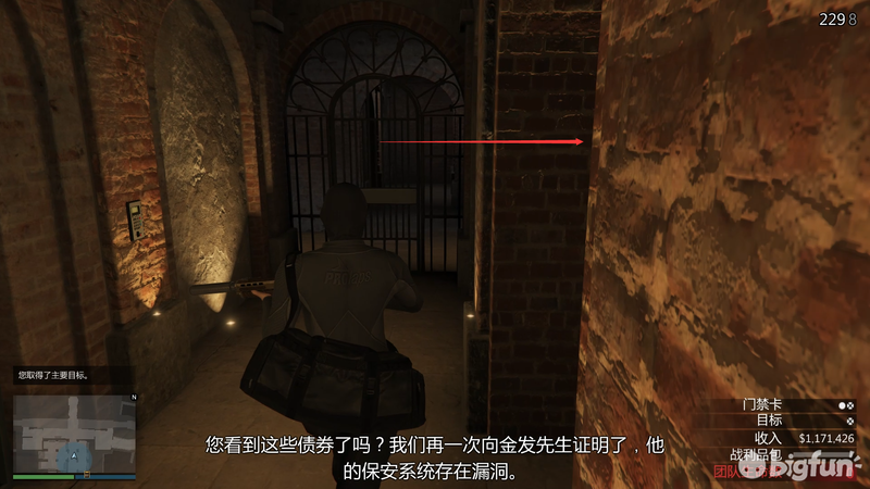 拿完主要目标后原路返回离开地下金库,记得出门右拐。