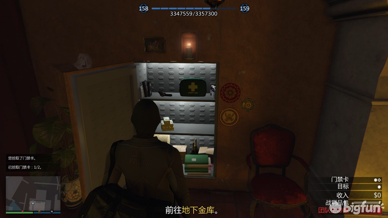 进入办公室,先去开保险箱,里面有5-10w不等的钱,并且不占用背包容量。