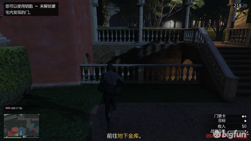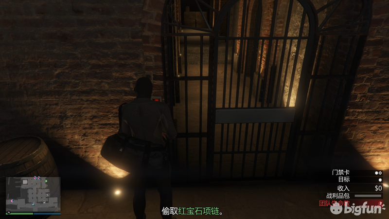 进入地下金库后往最里面走,按e打开最后一个铁门。