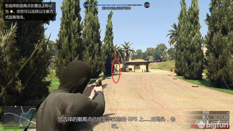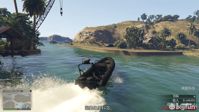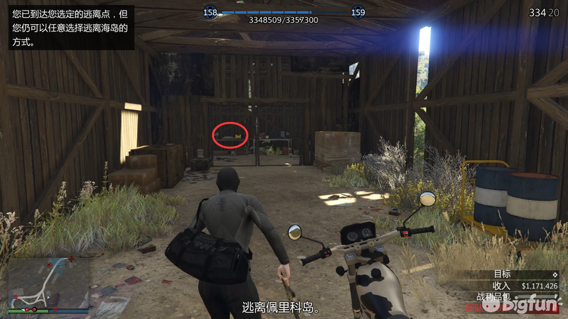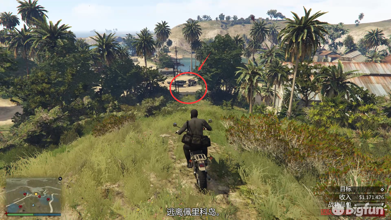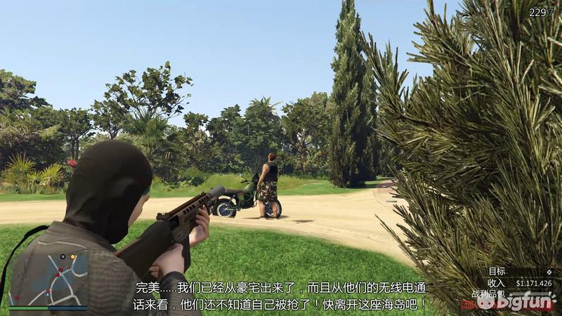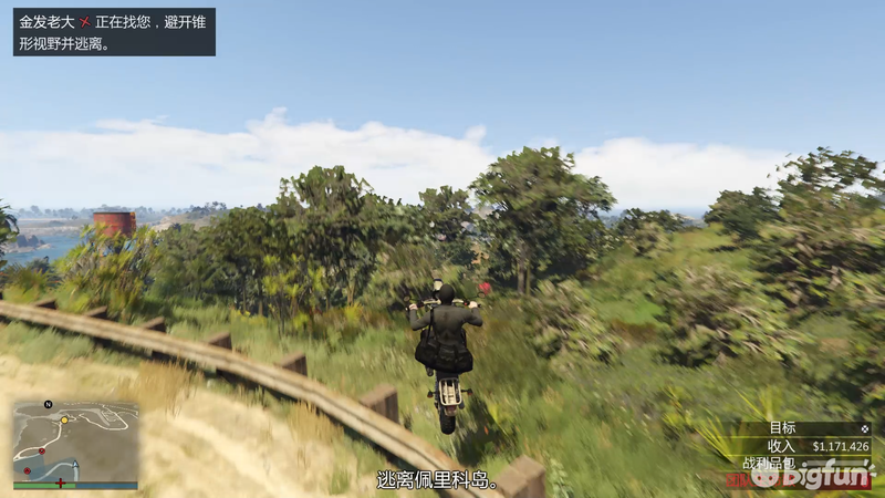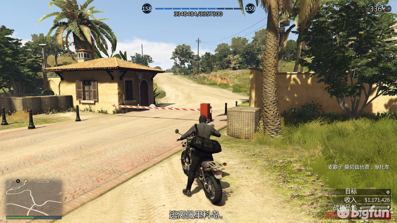 如果你嫌麻烦不想拿次要目标,或者在豪宅办公室内正好有两幅画拿满了,可以直接出门抢摩托跳海游走。