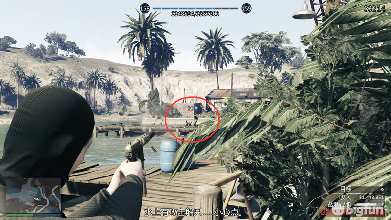 之后前往右边的码头,建议步行过去,留意小地图观察路上敌人的位置,一个个点掉。