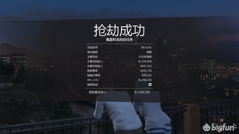 精英挑战普通5w,困难10w,只要全程不被发现还是很好完成的。上面的完成截图我是跑到机场开飞机走的,才用了不到14分钟(开局笨比了pageup了一次),精英挑战的15分钟之内还是很好达成的,至于“满载而归”装满背包,我们为了收益最大化是肯定要完成的。