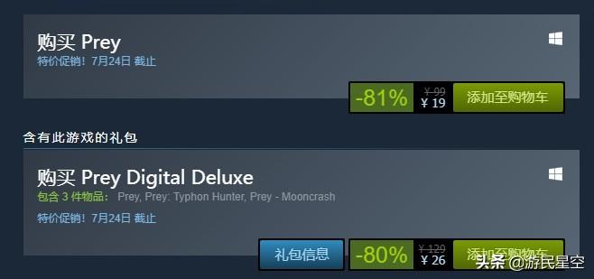prey游戏多少钱(掠食游戏Steam价格优惠)