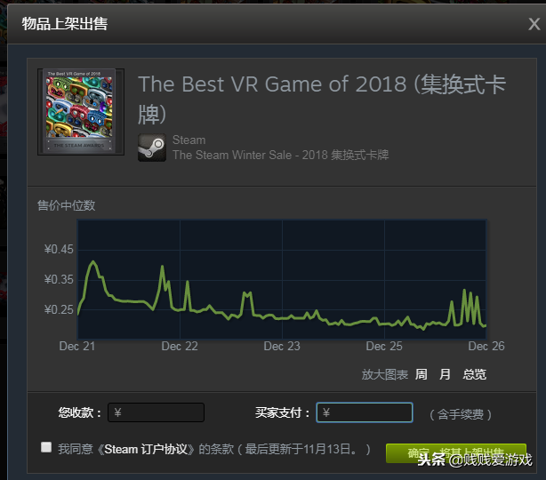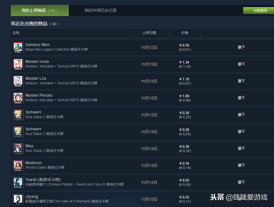 集换式卡牌还可以挂到市场上卖出,卖出的钱会变成steam钱包的余额,余额可以用来购买游戏!