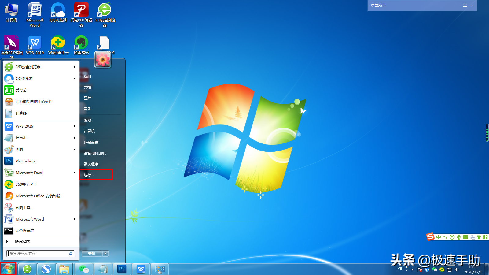 第一步,在电脑桌面的左下角,找到【开始菜单】按钮,然后点击打开,接着在弹出的选项中,选择【运行】功能。
