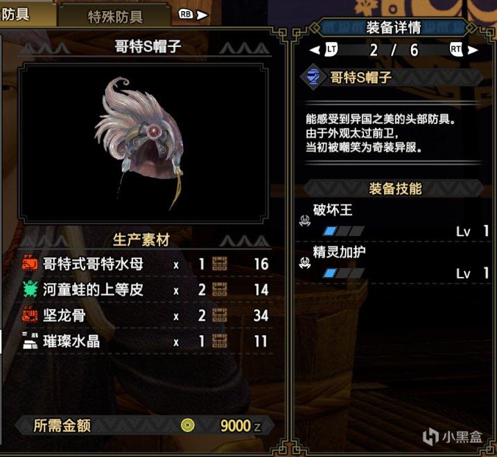 哥特S头,破坏王+1,提高部位破坏10%伤害,精灵加护+1,发动效果减免15%伤害,贪生怕死流也能材料多多。
