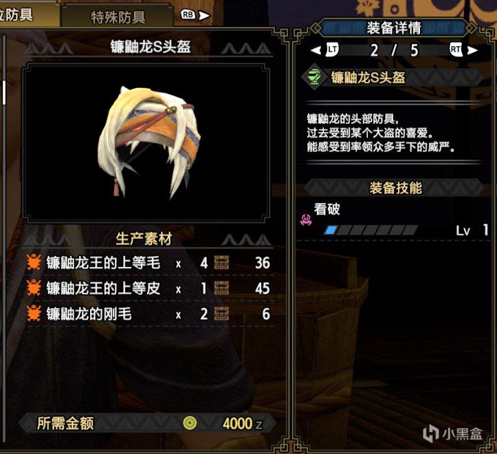 镰鼬龙S头,看破+1,5%会心率提升,前期材料基本够用的情况下更换的目的是为了提高整体防御力,保命第一。