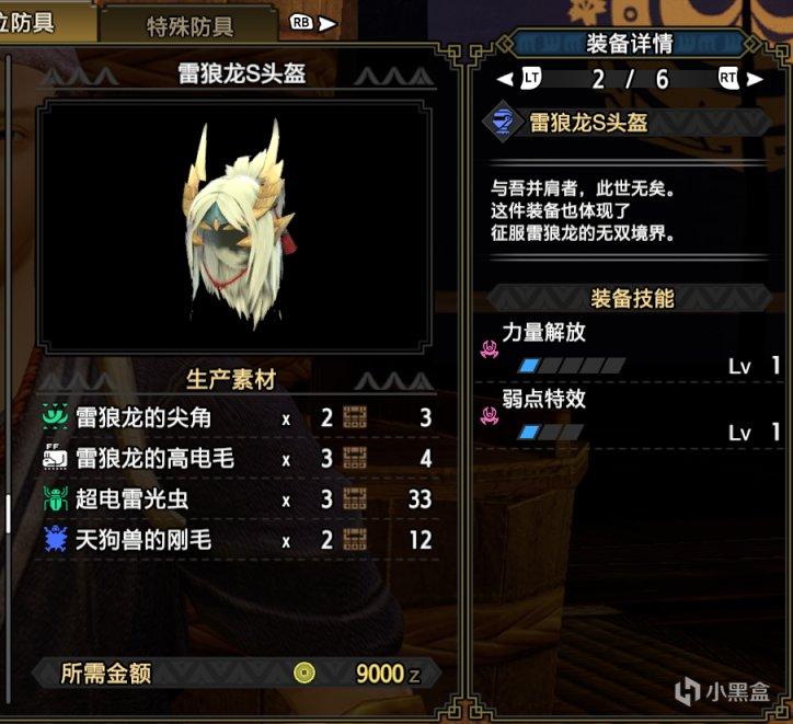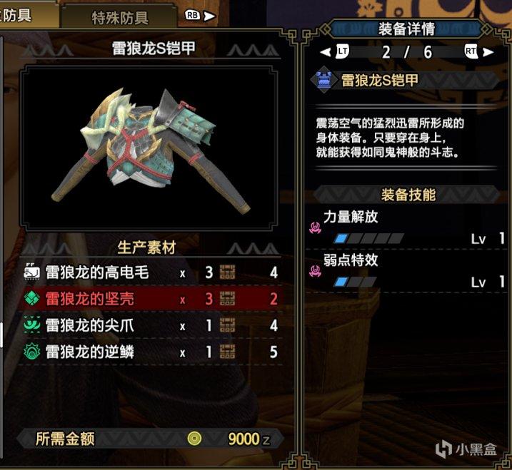 雷狼龙S胸,力量解放+1,弱点特效+1,配合头部叠加属性收益。