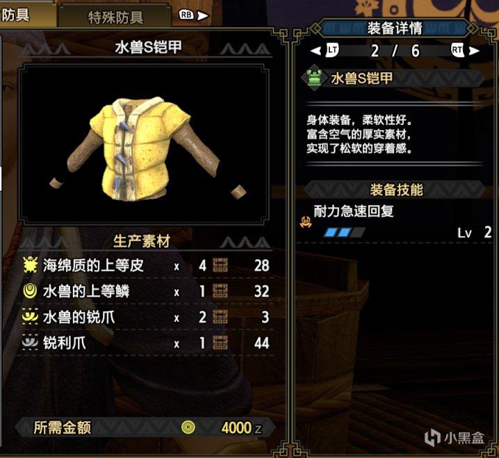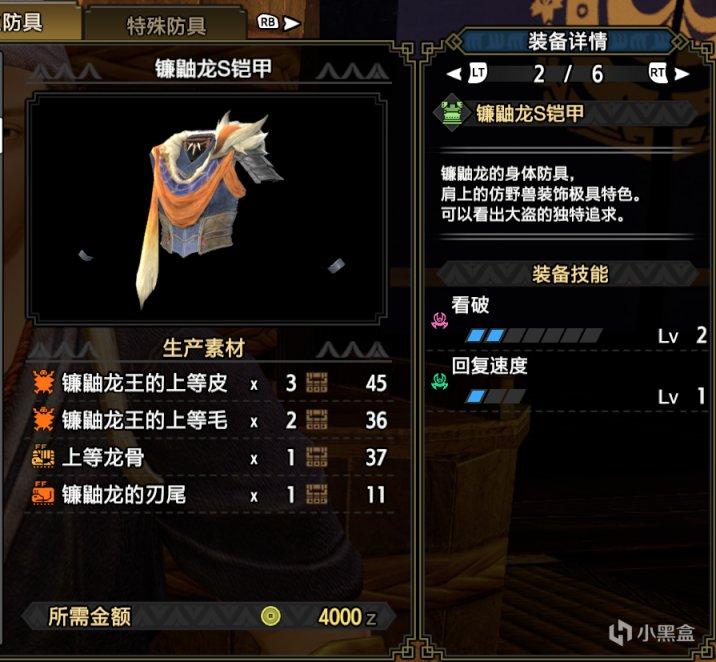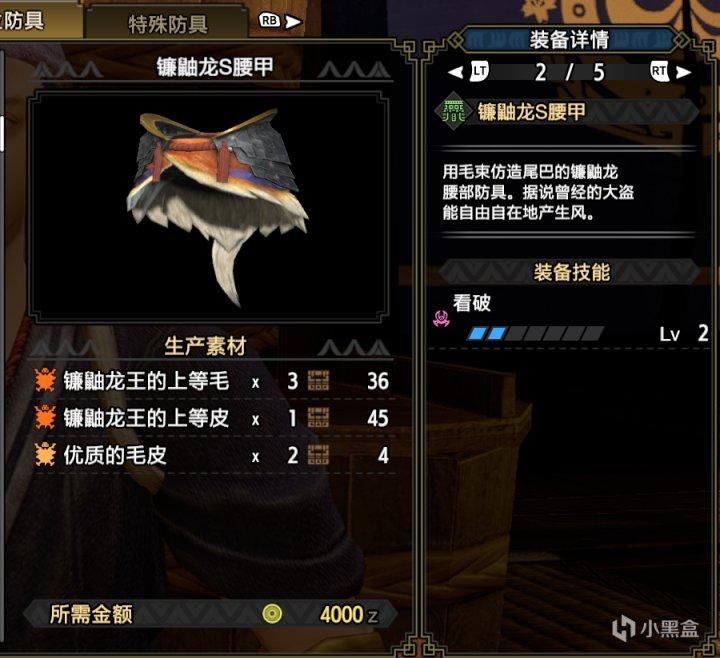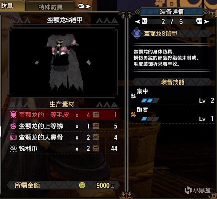 蛮颚龙S腰,攻击+2,伤害收益提升明显,另外孔不错,各类武器毕业套装必不可少。