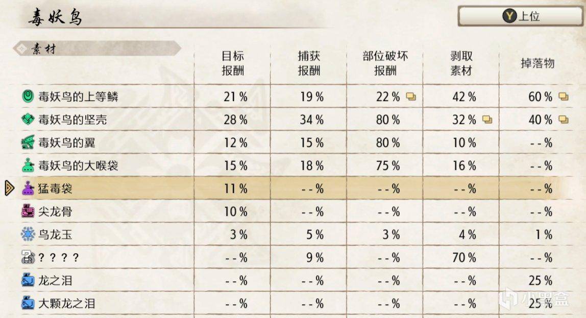 唯一的缺陷是猛毒袋材料的掉落,需要去狩猎毒妖鸟,掉落方式只能通过目标报酬获取,概率较低。