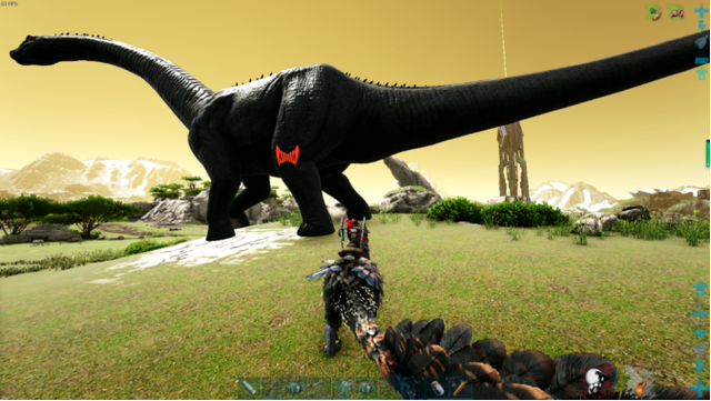 在《方舟:生存进化》里泰坦龙也是可以驯服的,驯服之后,能够培养成为移动堡垒,在泰坦龙宽厚的脊背上能够放置大型建筑物,或者放上平台鞍之后再放置各类元素,泰坦龙的其他平台鞍大很多。运输大质量的建筑,防卫系统和生物是泰坦龙的主要用途之一,还有些玩家甚至直接把部落建设在了泰坦龙身上。
