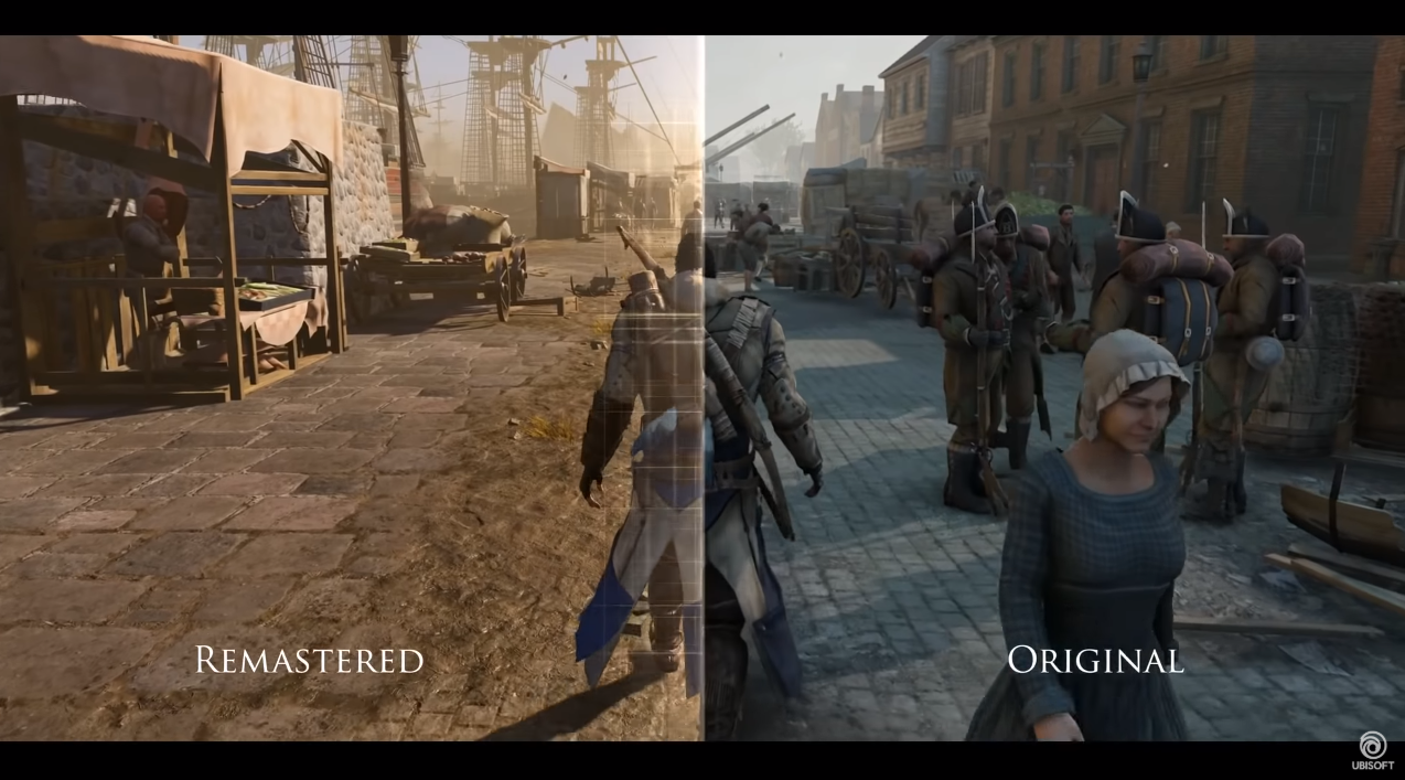 而在2012年《刺客信条3》发售之时,当时的最低配置为8800gt,如今重制版的最低配置可以说是提升了一大截,推荐配置970也是《刺客信条:大革命》的配置需求,可以想见重制版的画面也会有一个大的提升而不仅仅是局限于材质的高清化,从此前公布的对比图来看,光影上有着很明显的改变。