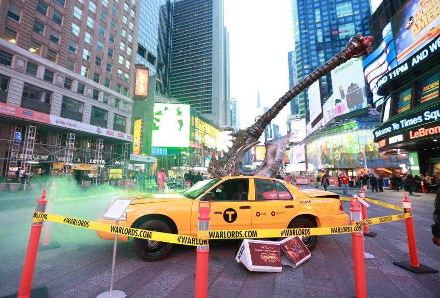 纽约时代广场现魔兽6.0创意广告:大斧饥渴难耐