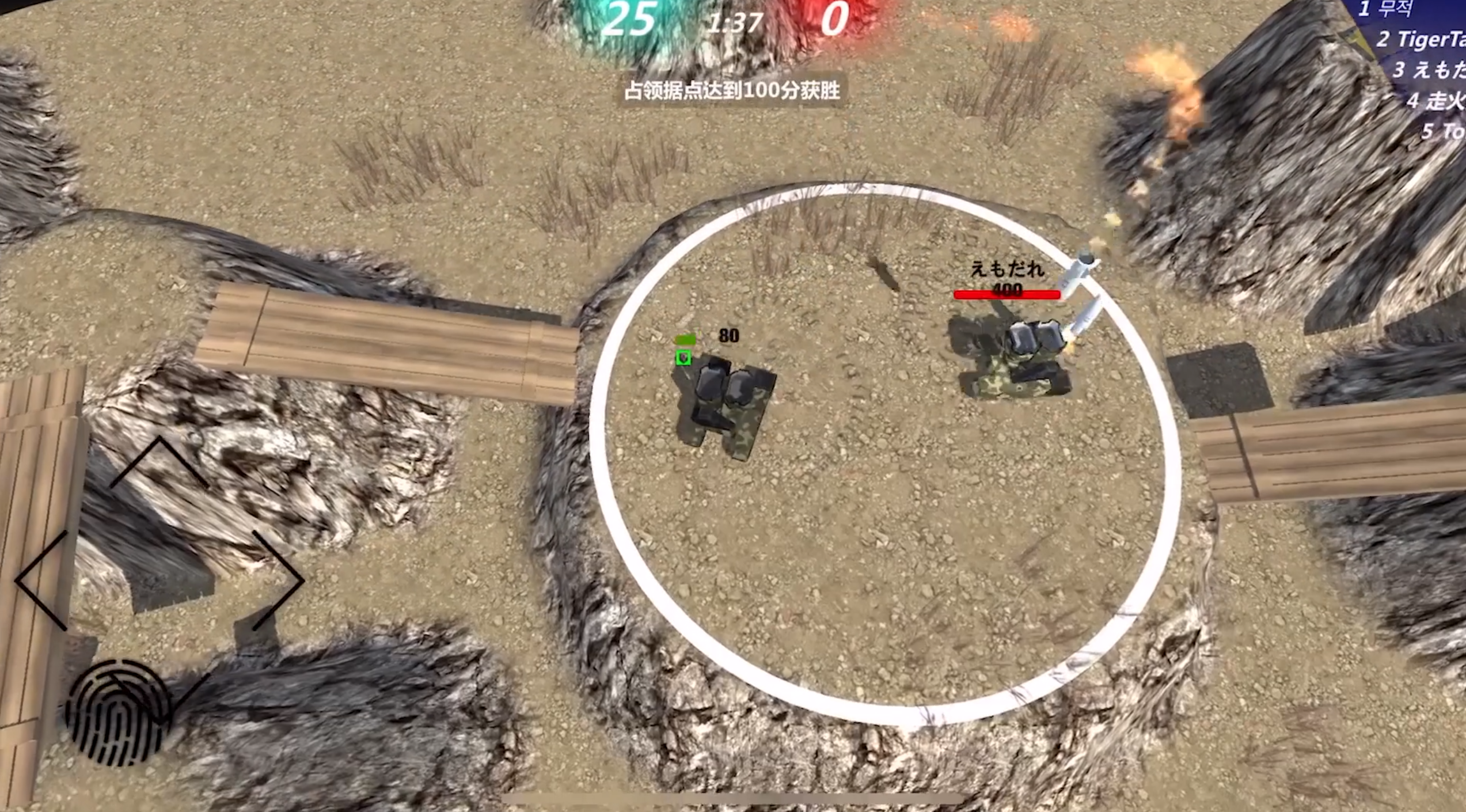 3、游戏的对战模式:《变形坦克2》在1代基础上增加了PVP联网对战,目前拥有:3V3团队战,占领据点,大乱斗模式,将来会加入更多新玩法。