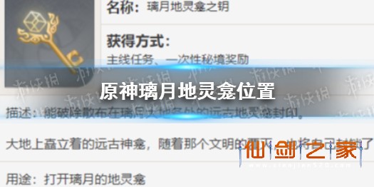璃月地灵龛之钥描述:能破除散布在璃月大地各处的远古地灵龛封印。大地上矗立着的远古神龛, 随着那个文明的覆灭,也将自己封锁了。在幽深的秘境中寻得的密钥能破除封印,或许只是利用过去的气息,让神龛忘记一切尽毁之事吧。
