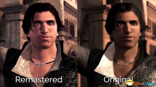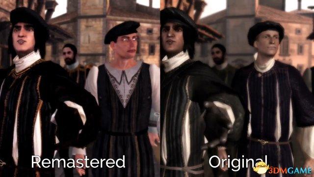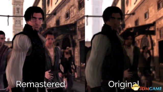 当然这些和下图中看到的就是小巫见大巫了。这个画面来自于《刺客信条2》中的一个过场动画里,这是一个路人NPC角色。在原版游戏中这个NPC很正常,而在重制版中这位NPC不知得罪了哪个画师,变成了这个丑样。