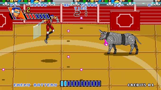 《Bullfighter Neo》计划于今年年底在Steam上发布,游戏的16位像素风格明显是主打怀旧人群,特别是开场闪烁的“PRESS START BUTTON”,以及斗牛士被击倒的动画,很有老派街机的味道。