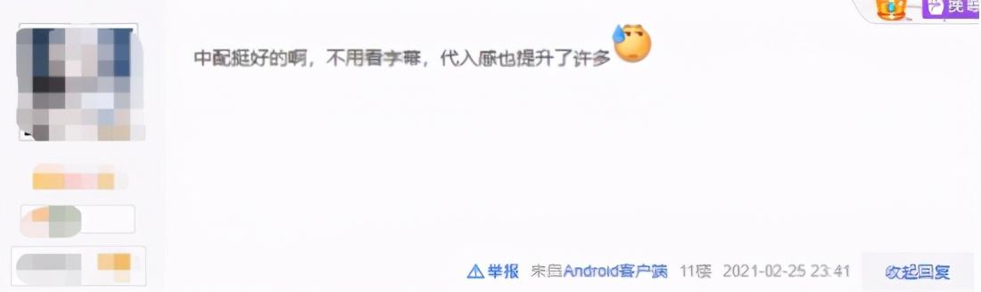 但是也有玩家认为“有中配就不用了分心看字幕了”“我觉得中配就很好”,认为原配字幕党听中文尴尬是自己的问题,而且要求太高,有点装的成分。