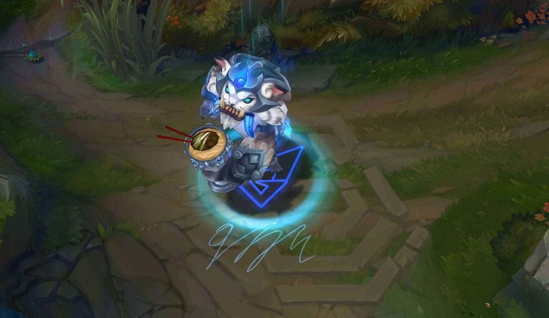 总的来说这套ssg的冠军皮肤制作还是挺好看的,像纳尔的配色以蓝白配色为主,和冰雪兽纳尔有相似之处。变大后变成类似韩国太极虎的模样,回城小纳尔和大纳尔各有一套回城动作,小纳尔回城会吃香蕉,大纳尔回城则会吃cuvee选手最爱的炸酱面。