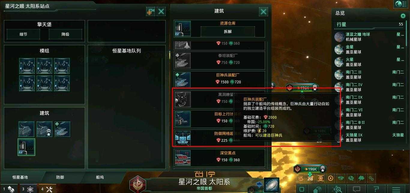 在游戏《群星》中,玩家建造巨像的前提是玩家首先要在飞升槽中选择巨像计划飞升,并且将自己的任意恒星基地升级到最高级。