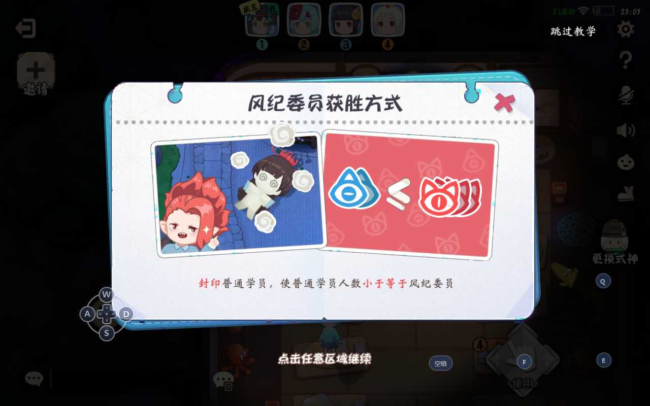 讨论环节:每当有学员发现被封印的其他学员时就会进入讨论环节,这边同样有个有别于传统狼人杀的地方,假设被封印的学员一直没被发现的话,风纪委员可以继续封印更多,普通学员的难度无疑提升了许多。