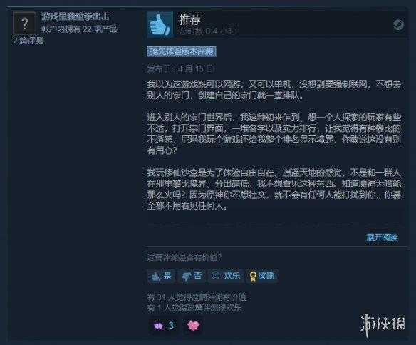 玩家评价截图: