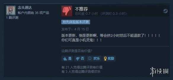 大多数的玩家表示自己连服务器进不去,有的玩家排队排了将近2小时,并且还是一直有玩家表示自己进游戏一直现实显示版本过低,完全进不去游戏。不过官方今天表示,已修复了服务器问题。也有玩家表示该作的玩法“换皮”、“缝合”,可玩度低于预期。