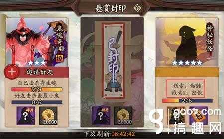 在阴阳师新出的悬赏封印任务中,玩家可能会随机刷到神秘妖怪榜单。玩家只能根据系统提供的线索和事件描述来判断要击杀的怪物。人物完成后将会获得R、SR或者SSR碎片的奖励。