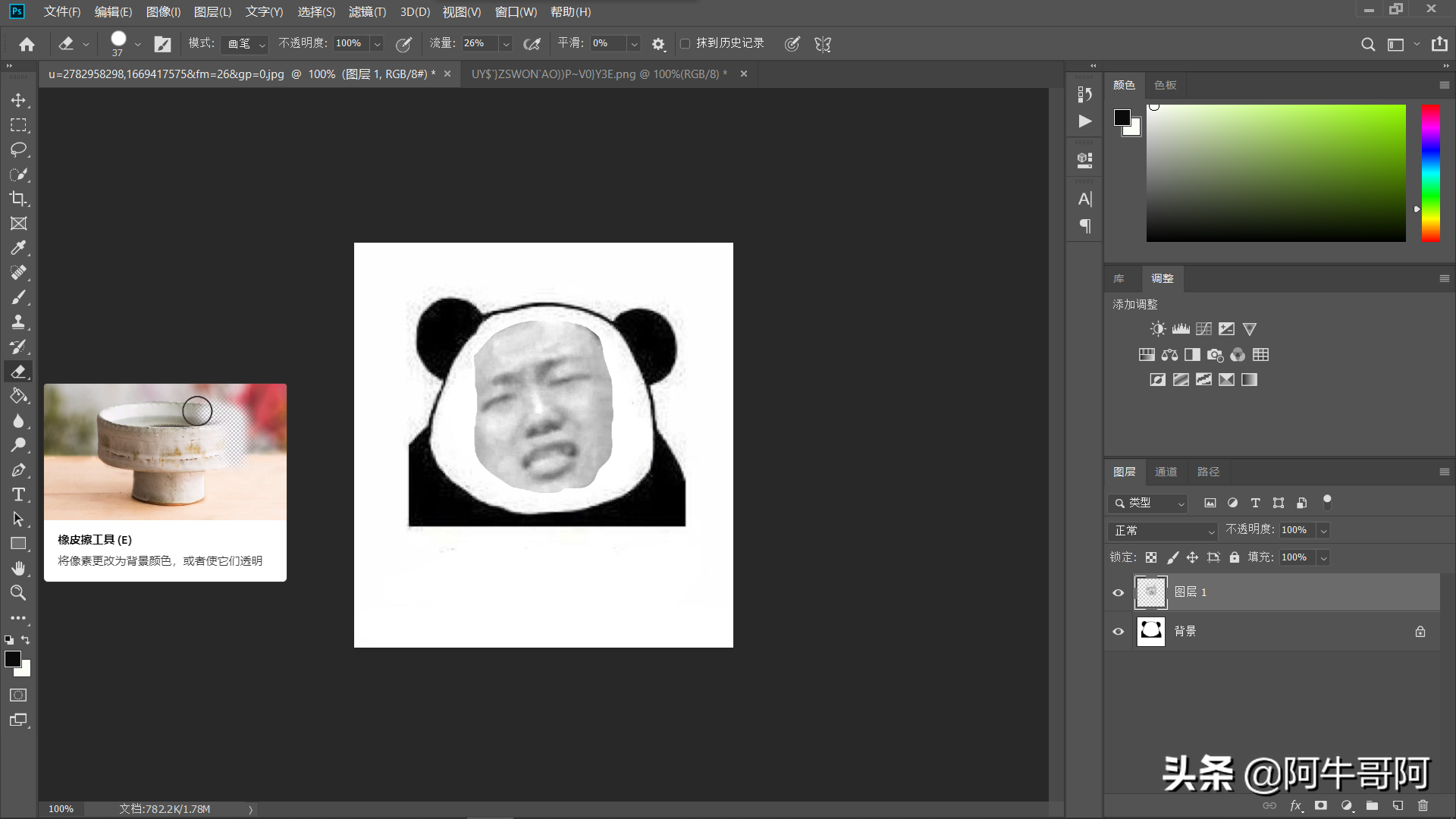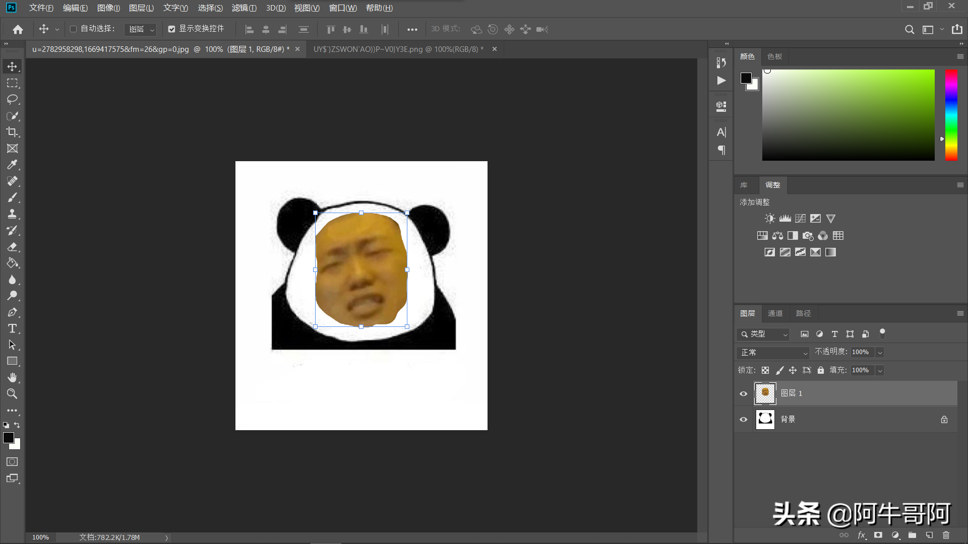 准备素材,一个空白的熊猫人,还有想做人的表情。准备好这两样就可以准备开始了。