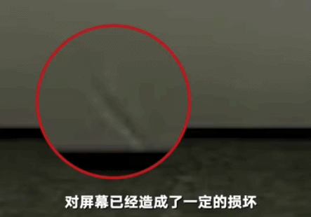 但是屏幕已经损坏,必须进行更换,“已经有一块凹陷和损坏,影响到正常播电影了,播电影的话会有裂痕出现。”