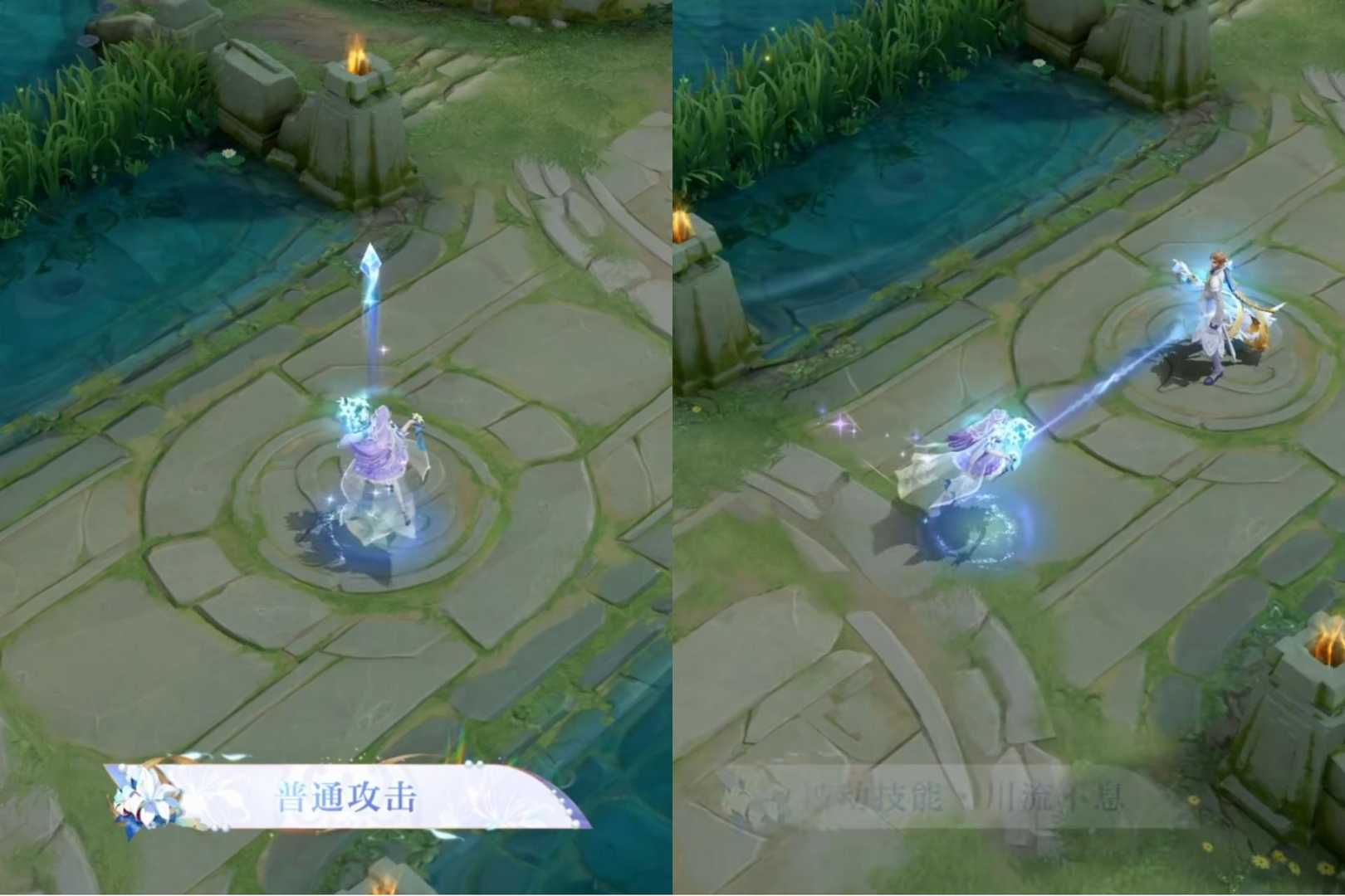 了解完皮肤形象之后,我们再来看一下这款皮肤的技能特效,整体的技能特效主要以蓝色和紫色为主,普通攻击有一种像水晶的感觉,被动技能就是一条直线特效,并没有太多效果整体的展示比较简约。