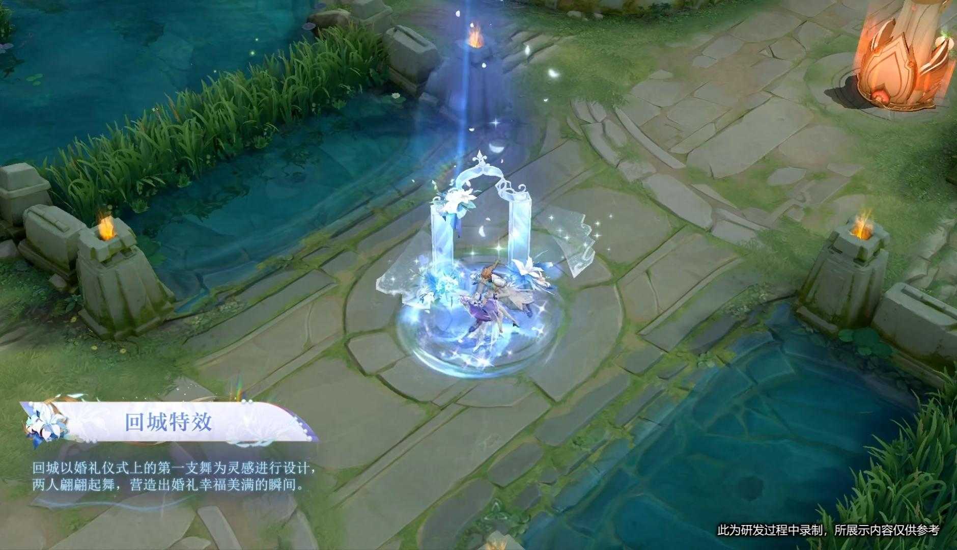 作为一款传说限定皮肤,回城特效肯定也是很重要的,在这款回城特效中,主要展示了大乔和孙策两个人跳舞的场景,同时还有婚礼主题音乐,这个音乐特效还是非常特殊的,但是大乔玩家在绝大多数情况下都是使用二技能回城的,所以大乔的回城技能肯定使用的很少。
