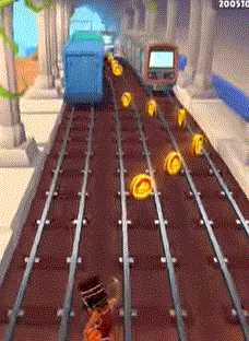 看到这里的你的记忆大概已经开始冰解,《地铁跑酷》最为经典的玩法便是在铁轨上狂奔,躲避眼前的障碍物与身后警卫的追捕,并在途中吃到代表分数奖励的金币以获取高分。