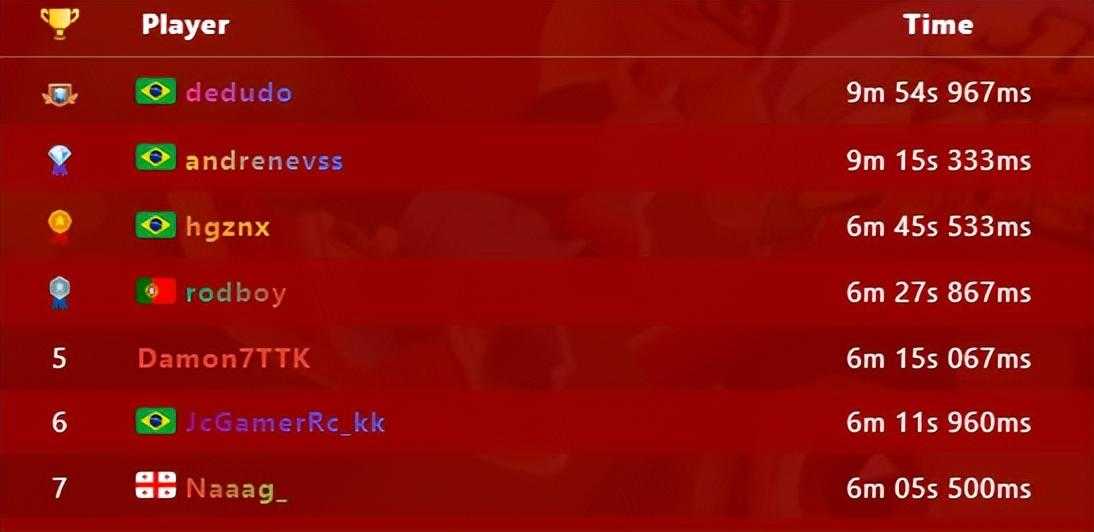 据粗略估算,在这张竞速榜单上,巴西玩家的占比超过了60%,如果再算上没有填写国籍的玩家,这个比例只会更加夸张。对于这个以英语为主的社区来说,管理员已经开始着手在每份公告里新填一份葡萄牙语的版本了。