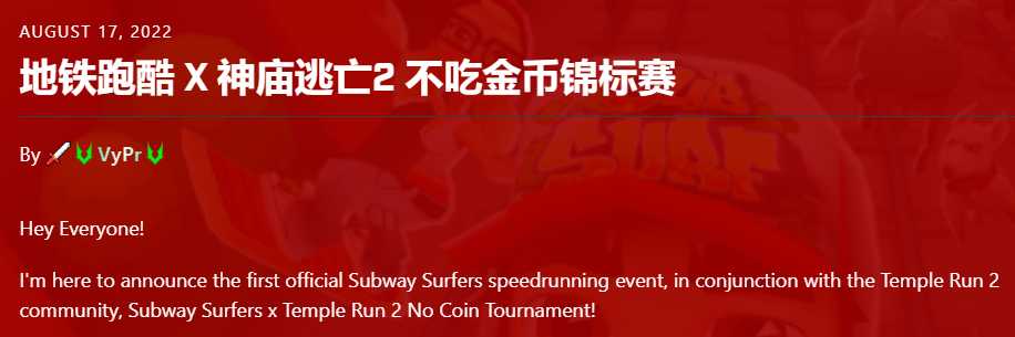 就在这个星期,还没玩过瘾的玩家们顺带搞起了一场《地铁跑酷》和《神庙逃亡》的联动,举办了个正儿八经的竞速比赛。昔日的跑酷手游二巨头如今站在一起,颇有股文艺复兴的风范。
