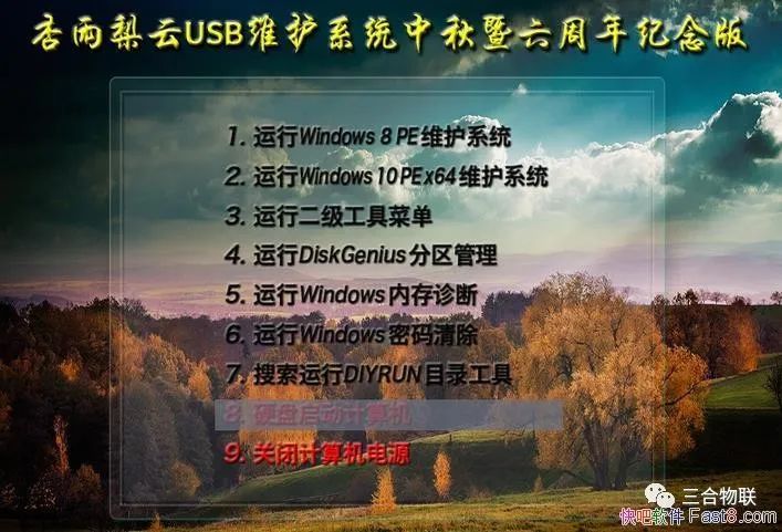 全新一代→杏雨梨云USB维护系统中秋暨六周年纪念版。2015.08.30 1、调整引导模式选项,保留USB-HDD(WinNT6)、USB-HDD(HDD+)、USB-HDD(UD)、USB-ZIP(UD)四项;2、优化[安装到本地磁盘]项执行过程,禁止不符合条件的环境安装;3、优化安装过程,修正个别情况下进度条显示冗乱的bug;4、生成ISO镜像时可选生成UDF或ISO9660,修正原先生成的ISO不能EFI引导的bug;5、调整文件结构,UltraISO写入生成的镜像至U盘后,不再需要处理PBR;6、升级Xload至V2.0.8.6,优化外置加载过程;7、2003PE整体打包处理,便于ISO处理;8、Win10PE文件拷贝时增加进度条显示;9、统一化PE盘符整理,删除个别无用文件,修正个别错误菜单;10、其他调整不再一一列明。