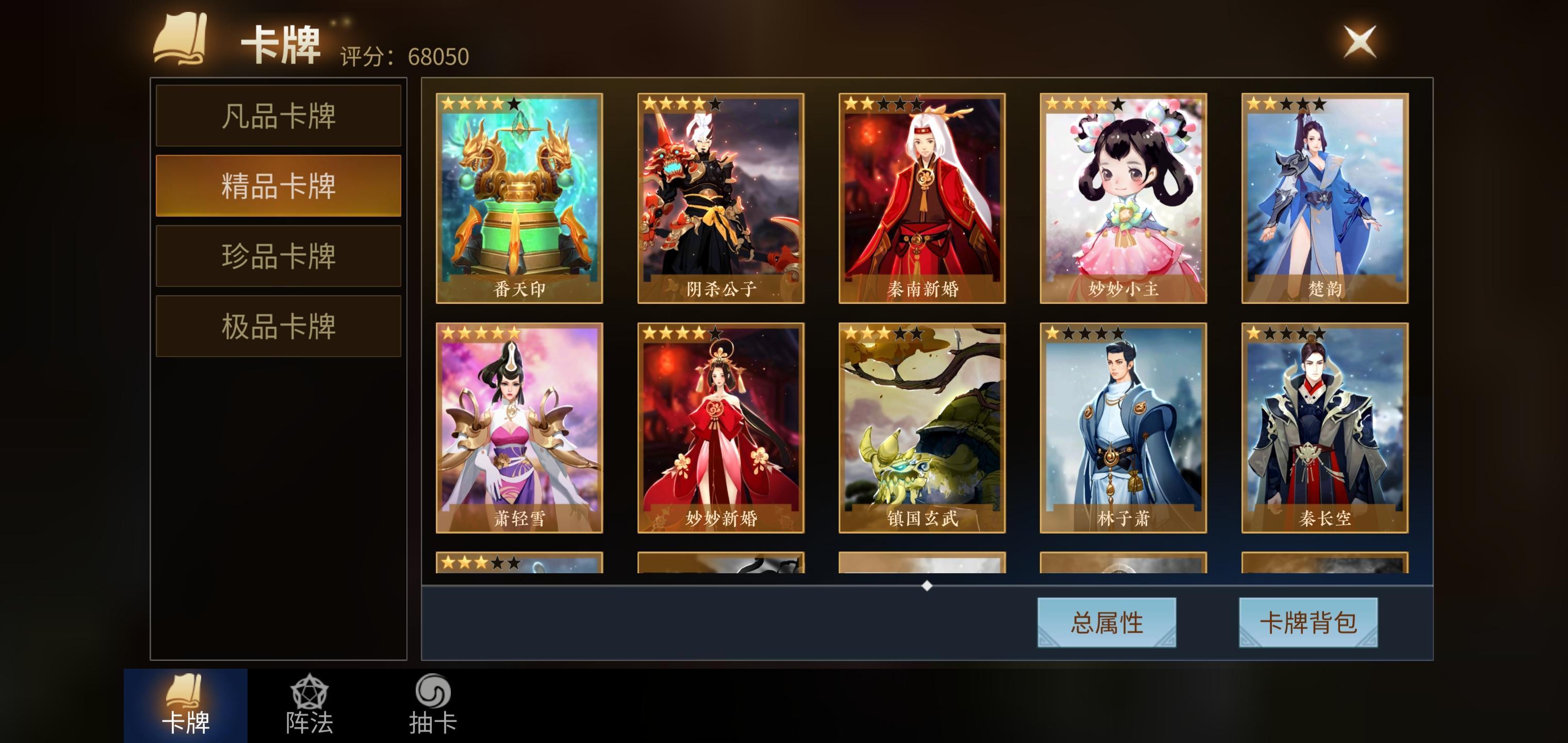 卡牌依照稀有度分为了凡品、精品、珍品和极品,而获取方式主要有两种,玩家每天都能免费抽取卡牌,抽完后会进入8小时的冷却,之后就可以再次免费抽卡。使用唤神符道具,也能获得抽卡次数。