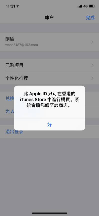 ④登陆港服账号后,苹果商店的地区会自动切换。