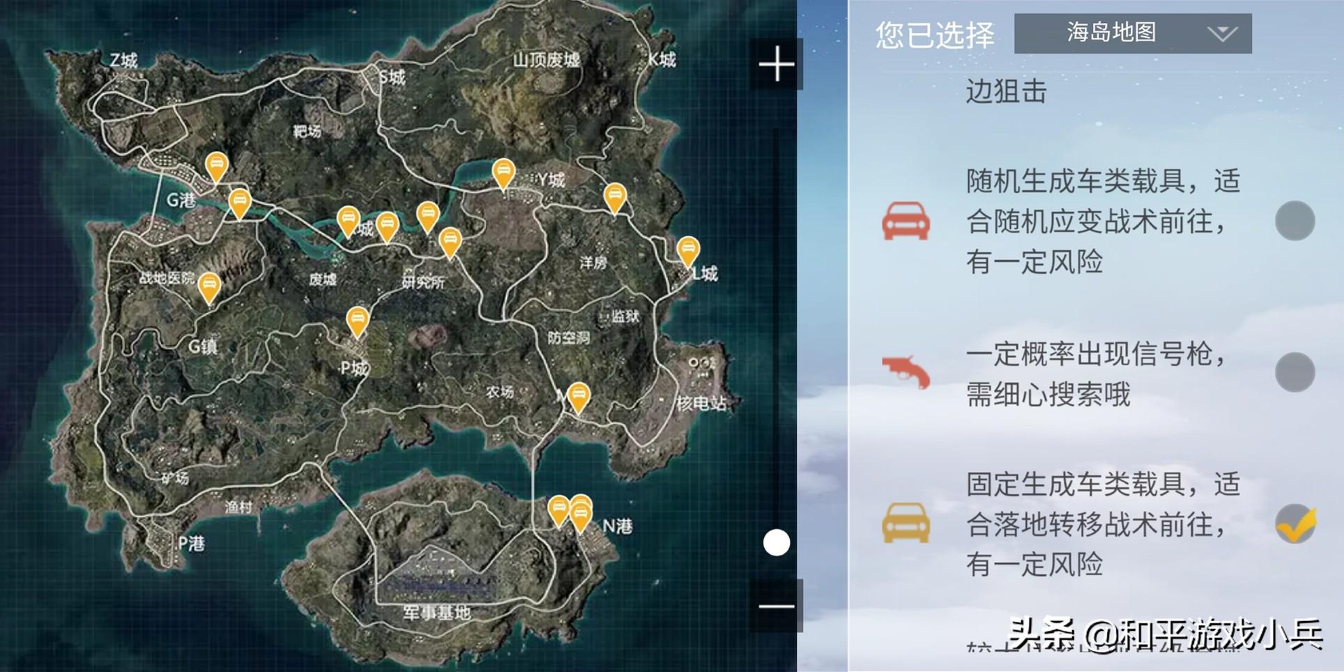 首先说说载具的刷新场所。游戏里载具的作用越来越大,除了可以战术转移、赶路,后期也可以玩无敌火力车。那么我们先认识一下海岛固定刷新载具的场所。