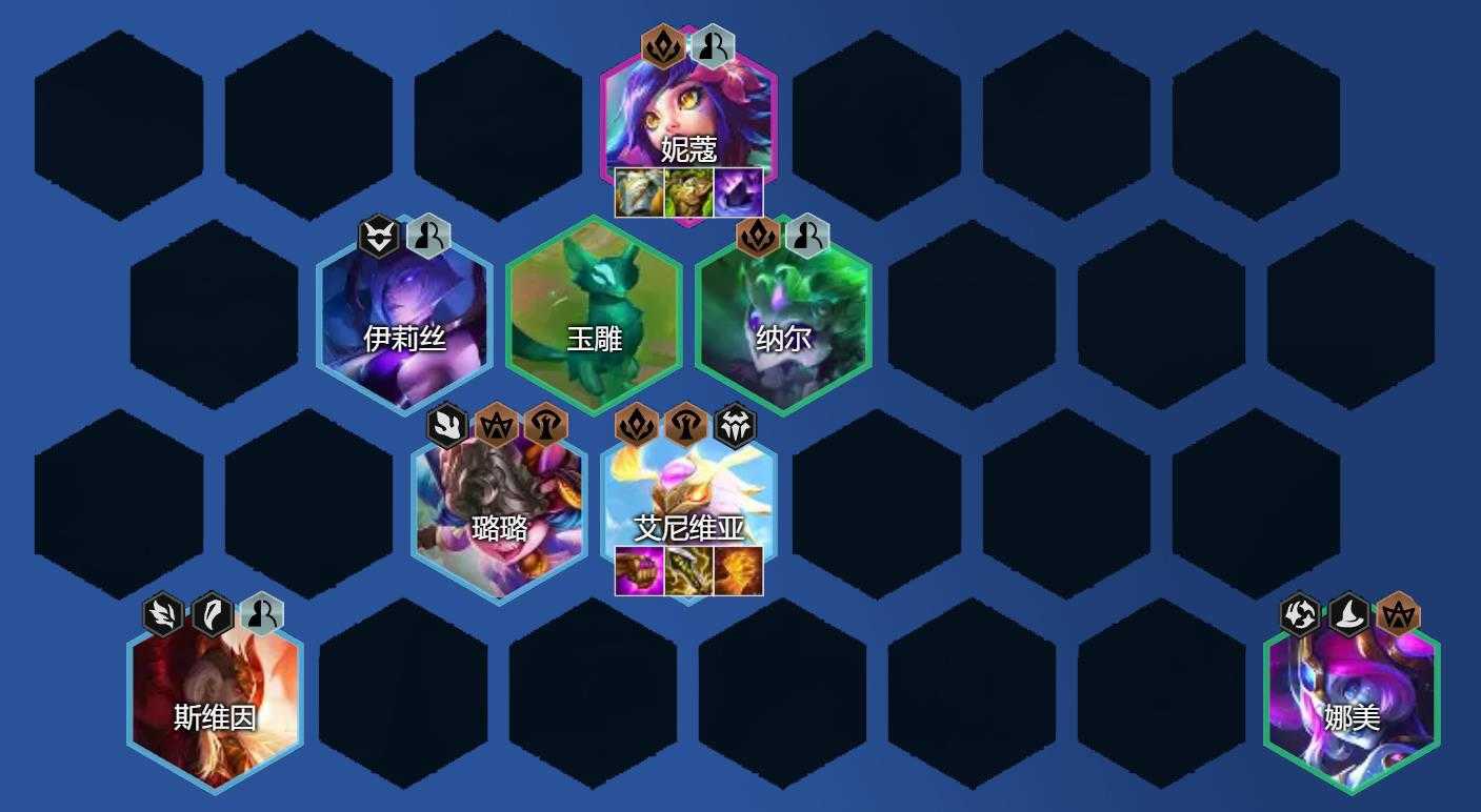 这套阵容妮蔻是单坦,需要承受大部分伤害,对坦度装备比较较高。石像鬼是最优的开局增加较高双抗,让其稳定释放出技能。