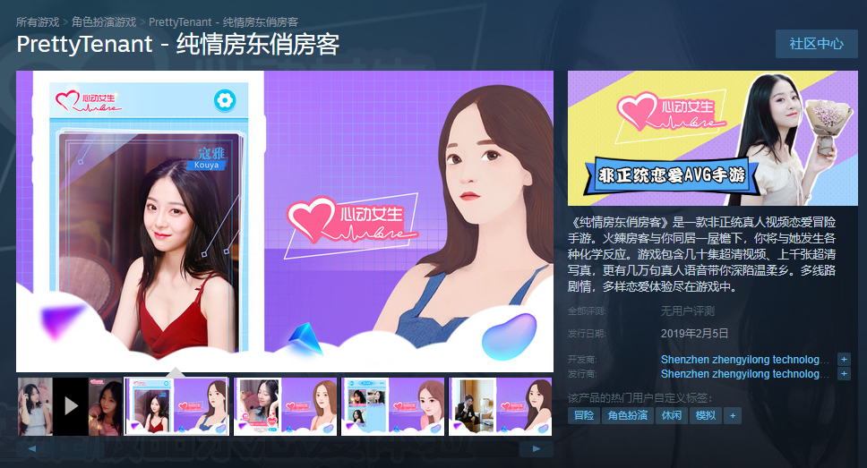 Steam今日上架了一款真人视频游戏,名为《纯情房东俏房客》,据称包含几十集超清视频、上千张超清写真,更有几万句真人语音带你深陷温柔乡还有多线路剧情。
