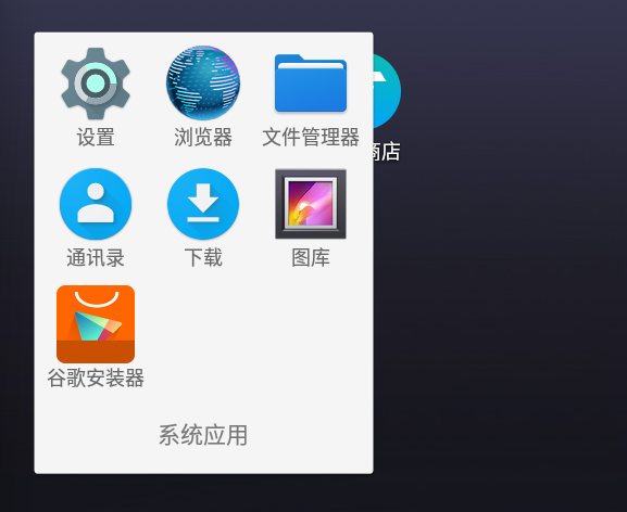 自带系统软件中,除了必要的应用软件外,还多了一个Google安装器,使模拟器支持Google框架,以兼容更多的应用。