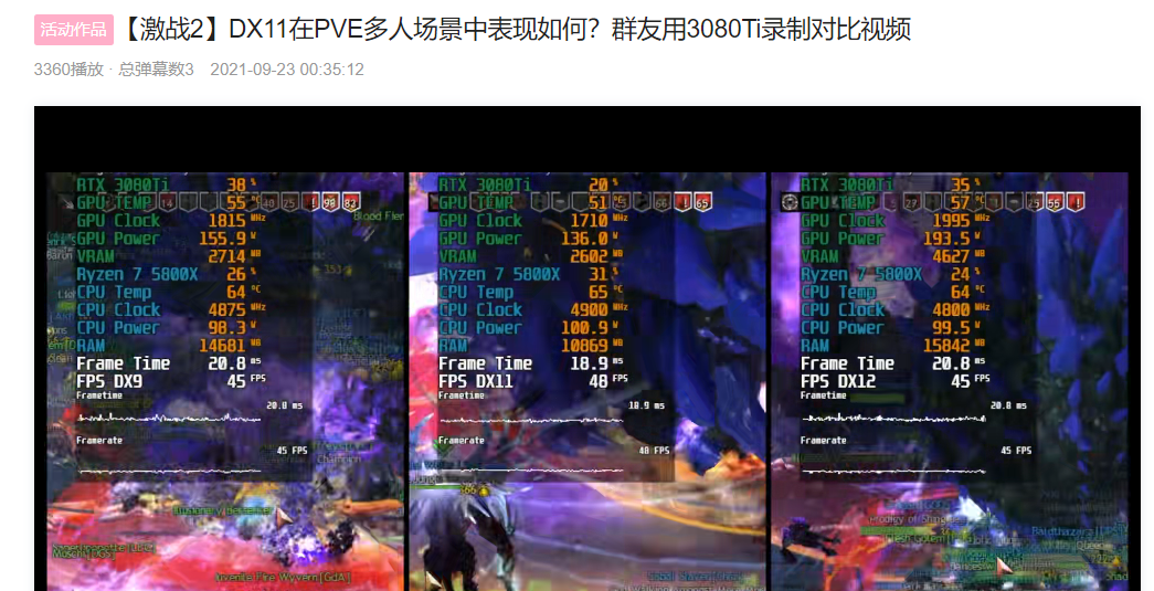 3080ti,无论哪个版本dx,pve大型事件依旧45帧