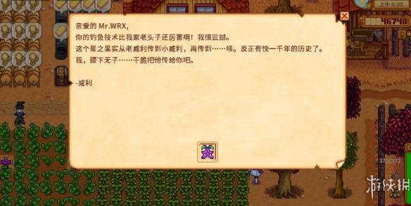 当你钓完所有种类的鱼后,隔天可以在邮筒中收到威利一封意味深长的邮件,星之果实附在邮件中一起给你了。